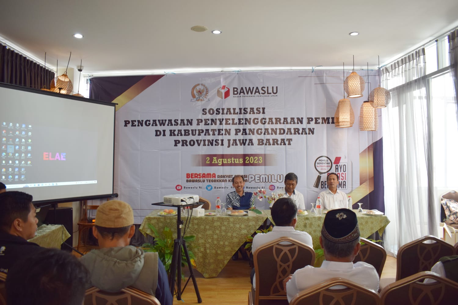Pangandaran, -Bawaslu Kabupaten Pangandaran- gelar sosialisasi pengawasan penyelenggaraan Pemilu Tahun 2024, Rabu, (02/08/2023).