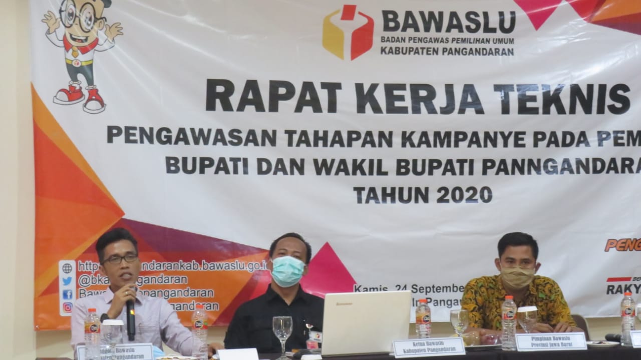 Pangandaran, Bawaslu Kabupaten Pangandaran menggelar rapat kerja teknis pengawasan tahapan kampanye pada pemilihan bupati wakil bupati Kabupaten Pangandaran. (24/09/2020)