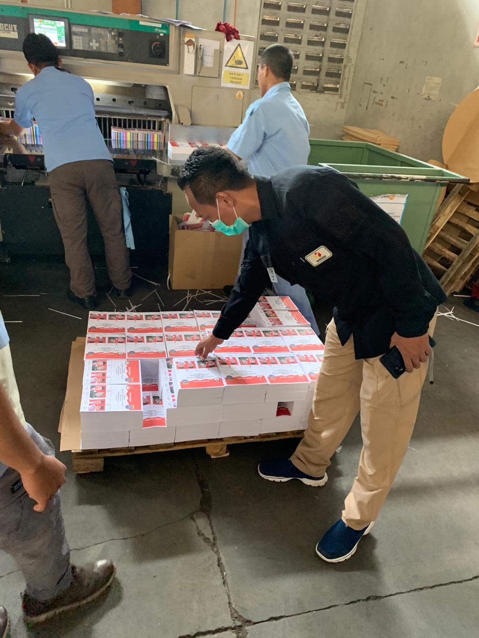 Menurut keterangan pihak Pabrik, Manajemen gudang logistik sudah melakukan standar protokol kesehatan covid-19 dengan cara semua karyawan menggunakan masker dan setiap tamu yang datang harus menyerahkan rapid test terlebih dahulu dan membatasi jumlah orang yang akan melihat mekanisme pada saat proses percetakan berlangsung.