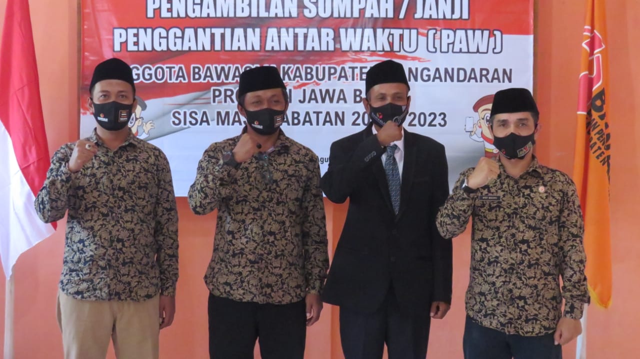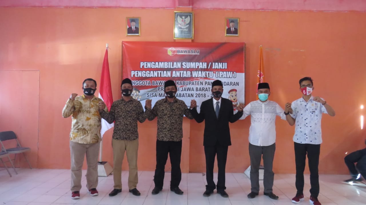 Parigi, Bawaslu Kabupaten Pangandaran- Pengambilan Sumpah / Janji Penggantian Antar Waktu (PAW) Anggota Bawaslu Kabupaten Pangandaran, Kamis (06/08/2020).