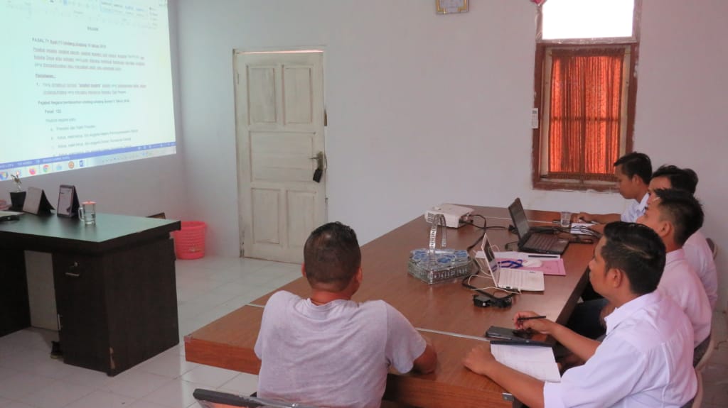 Pangandaran-Bawaslu Kabupaten pangandaran, staf divisi hukum dan penanganan pelanggaran melakukan kajian hukum undang-undang 10 Tahun 2016 di sekretariat Bawaslu Kabupaten Pangandaran (22/01/2020)