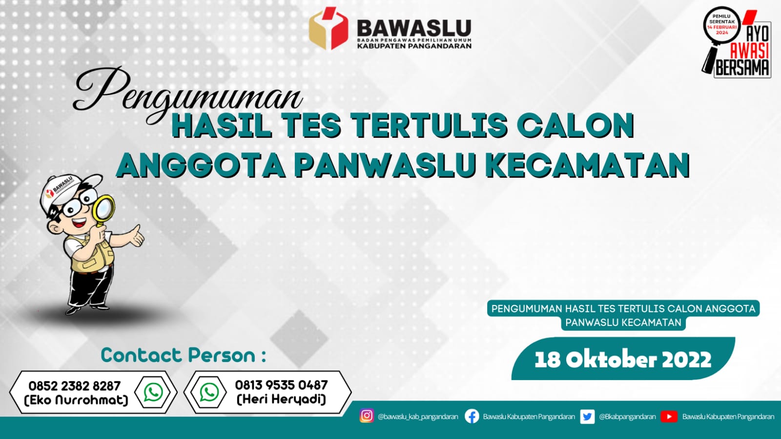 PENGUMUMAN HASIL TES TERTULIS CALON ANGGOTA PANWASLU KECAMATAN UNTUK KABUPATEN PANGANDARAN