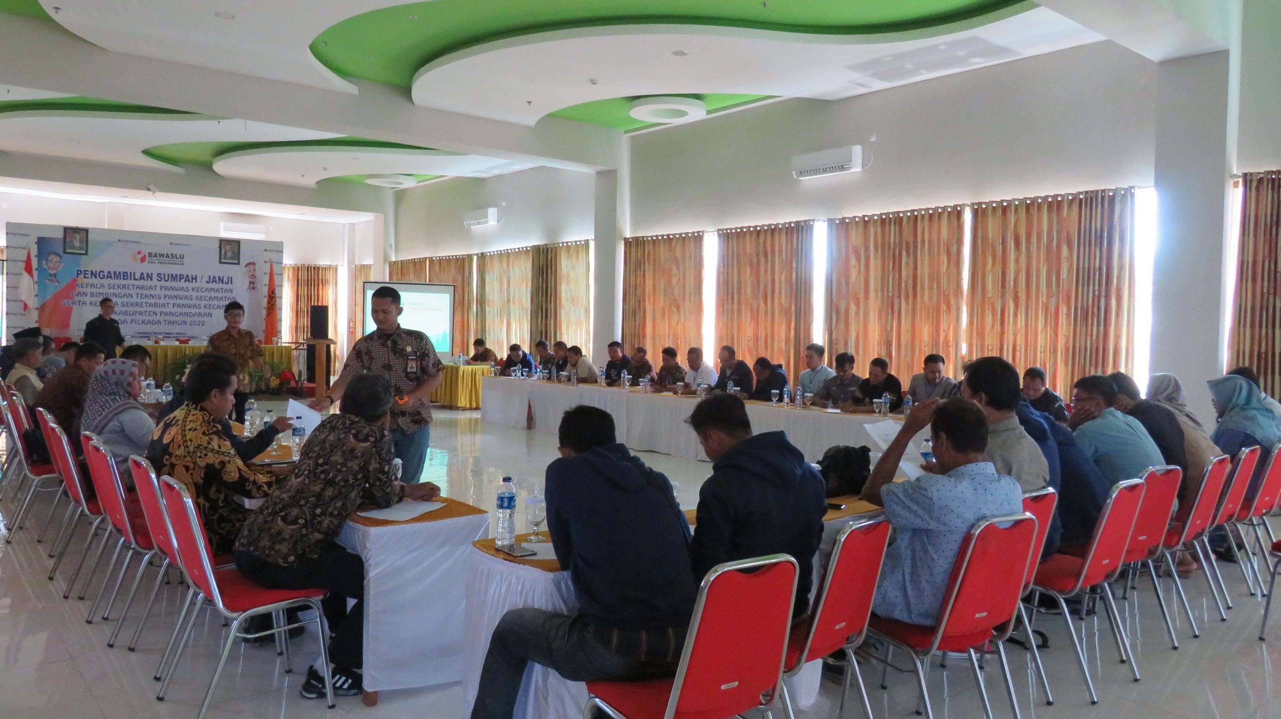 Pangandaran, Bawaslu Kabupaten Pangandaran - Bimbingan Teknis (Bimtek) Pengawas Kecamatan sebagai tindak lanjut dari pembekalan umum pasca dilantik , 30 orang anggota Panwascam se-Kabupaten Pangandaran. Kegiatan dilaksanakan di Aqurium Grand Hotel Pangandaran (28/12/2019)