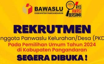 Panwascam se-Kabupaten Pangandaran membuka rekrutmen Pengawas Kelurahan/Desa untuk Pemilu 2024 lho.