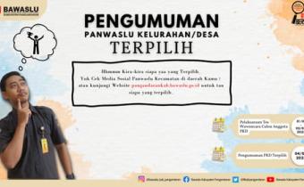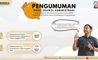 Berikut adalah Pengumuman Hasil Seleksi Administrasi Calon Panwas Kelurahan/Desa untuk Pemilu Tahun 2024 di Kabupaten Pangandaran, dapat diunduh pada tautan di berikut ini :