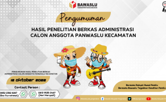 Bersama ini kami umumkan nama-nama yang lolos seleksi administrasi calon anggota Panwaslu kecamatan Kabupaten Pangandaran pada pemilu 2024 dapat di unduh pada tautan sebagai berikut: