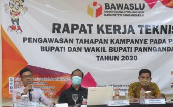 Pangandaran, Bawaslu Kabupaten Pangandaran menggelar rapat kerja teknis pengawasan tahapan kampanye pada pemilihan bupati wakil bupati Kabupaten Pangandaran. (24/09/2020)
