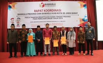 Rapat Koordinasi Bawaslu Provinsi dan Kab Kota Se-Jawa Barat pasca tahapan Rekapitulasi suara, dilanjutkan pemberian santunan kepada keluarga/Ahli waris pengawas pemilu yng meninggal serta Tausiah dr Ust. Tatan.