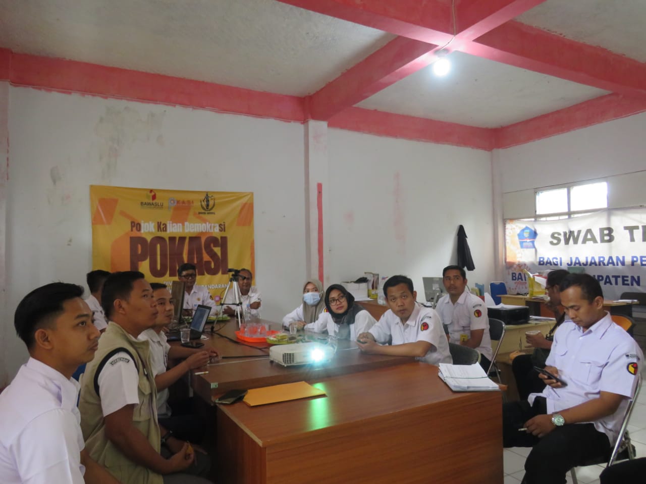Bawaslu Kabupaten Pangandaran usai selenggarakan rapat dalam kantior pengelolaan data dan informasi di Bawaslu Kabupaten Pangandaran melalui daring dan luring,Rabu (11/11/2021).