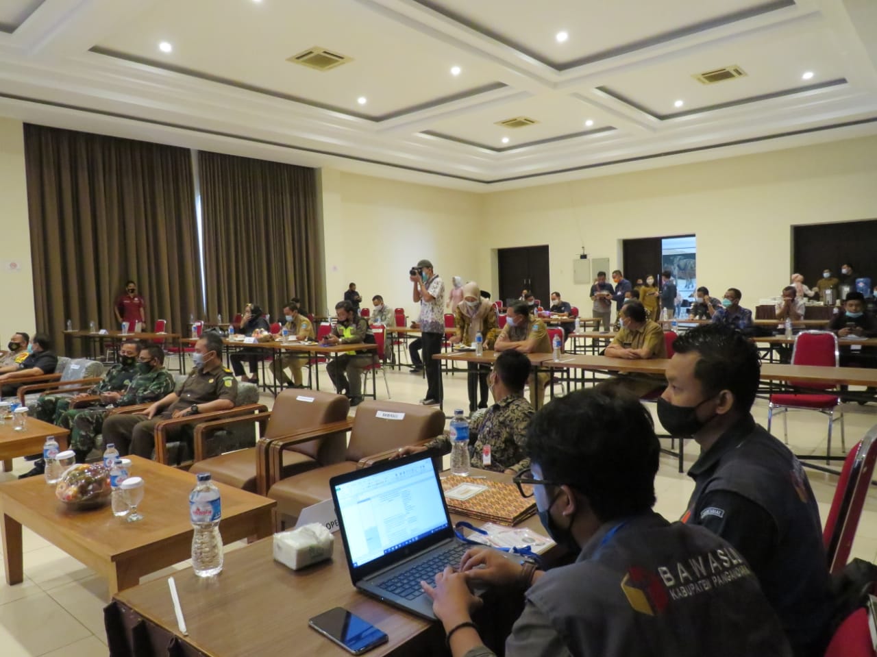 Bawaslu Kabupaten Pangandaran melakukan Pengawasan rapat pleno tingkat kabupaten di Hotel Pantai Indah Pangandaran. Pleno dihadiri oleh Stakeholder, Kapolres, Dandim, Danrem, Bupati, dan Kejaksaan, Selasa (15/12/2020)