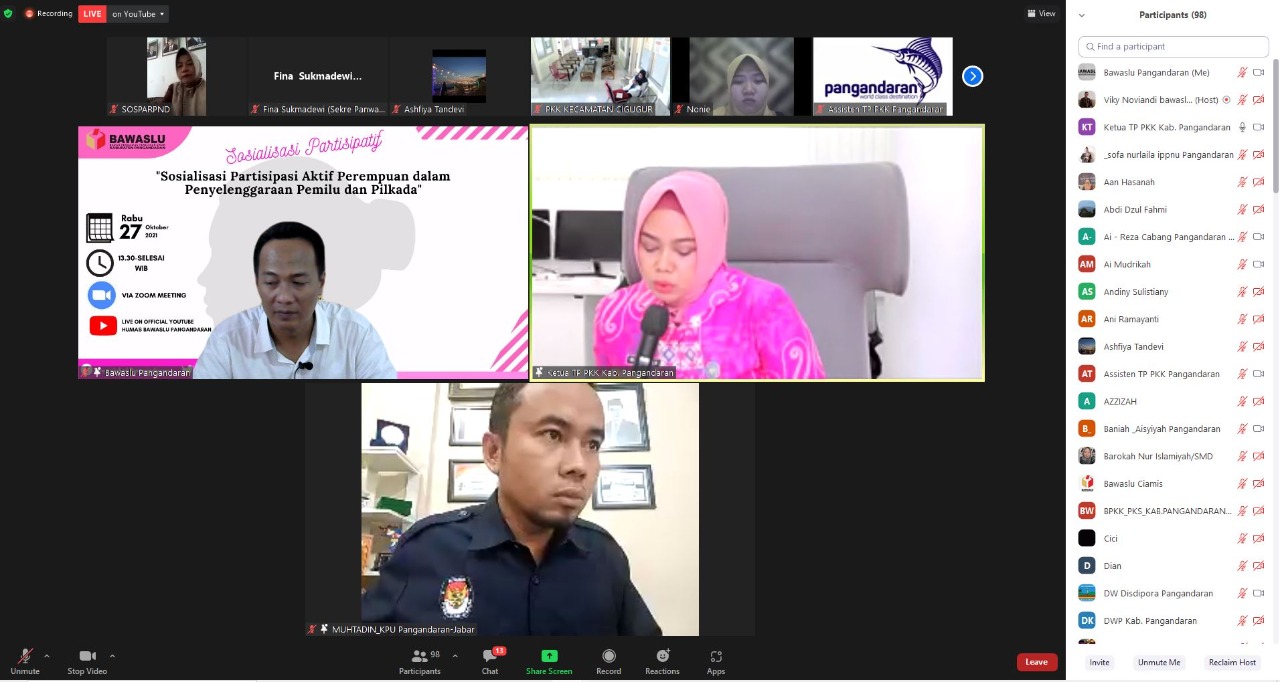 Parigi-Bawaslu Kabupaten Pangandaran usai selenggarakan Sosialisasi Partisipasi Aktif Perempuan dalam Pemilu dan Pilkada melalui Daring bersama 100 Perempuan dari berbagai organisasi di Kabupaten Pangandaran, (27/10/2021)